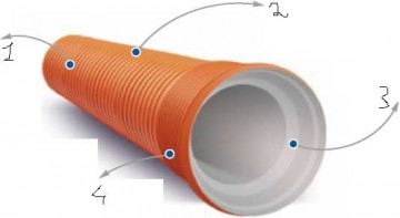 Внешняя поверхность трубы имеет гофрированную структуру и окрашивается в коричневый цвет, в соответствии с европейскими нормами классификации подобной продукции. Внутренняя часть имеет гладкую белую поверхность, что позволяет с легкостью производить регламентированную телевизионную инспекцию в процессе эксплуатации трубы.